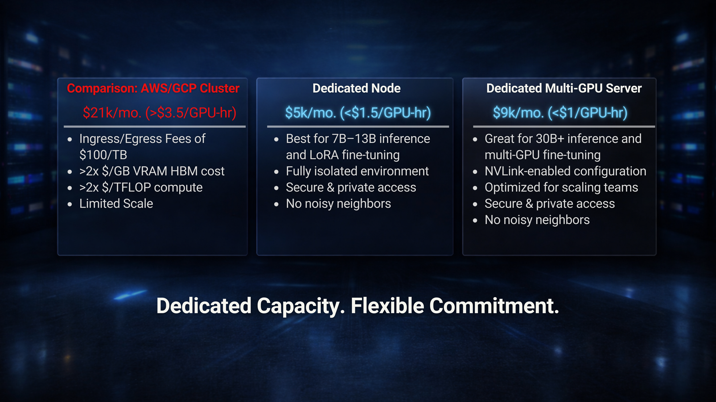 Powered by NVIDIA GPUs, our platform delivers high-performance compute built for modern AI training and inference.